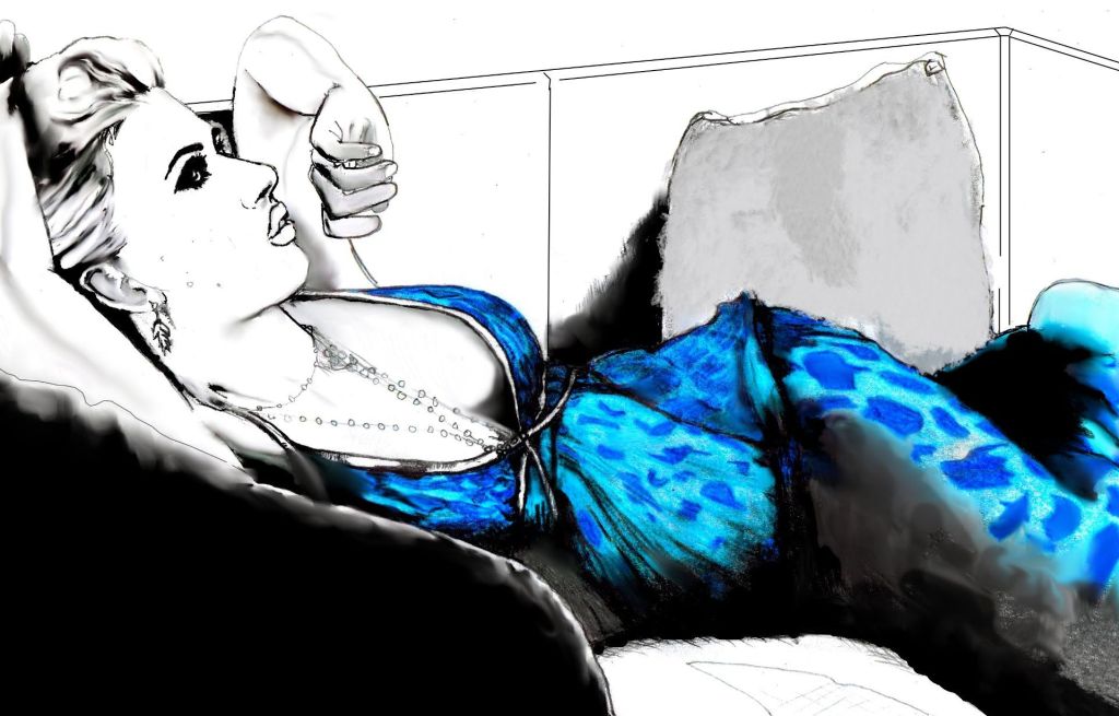 Not traced.,, blending together colored pencils on the dress then and adding some shading in Photoshop.